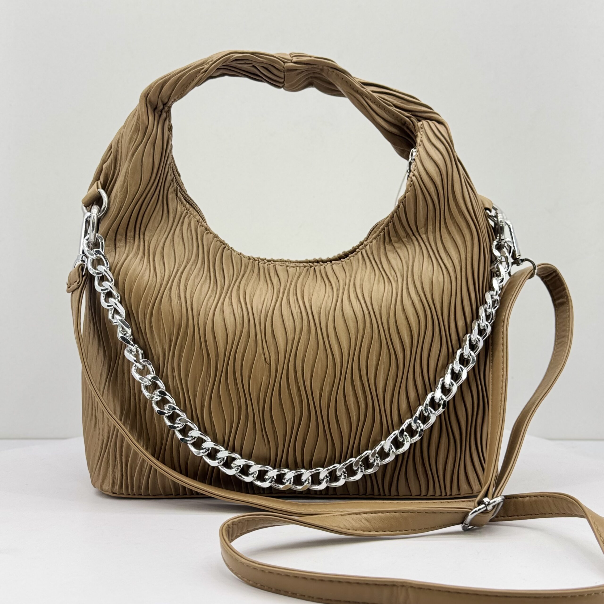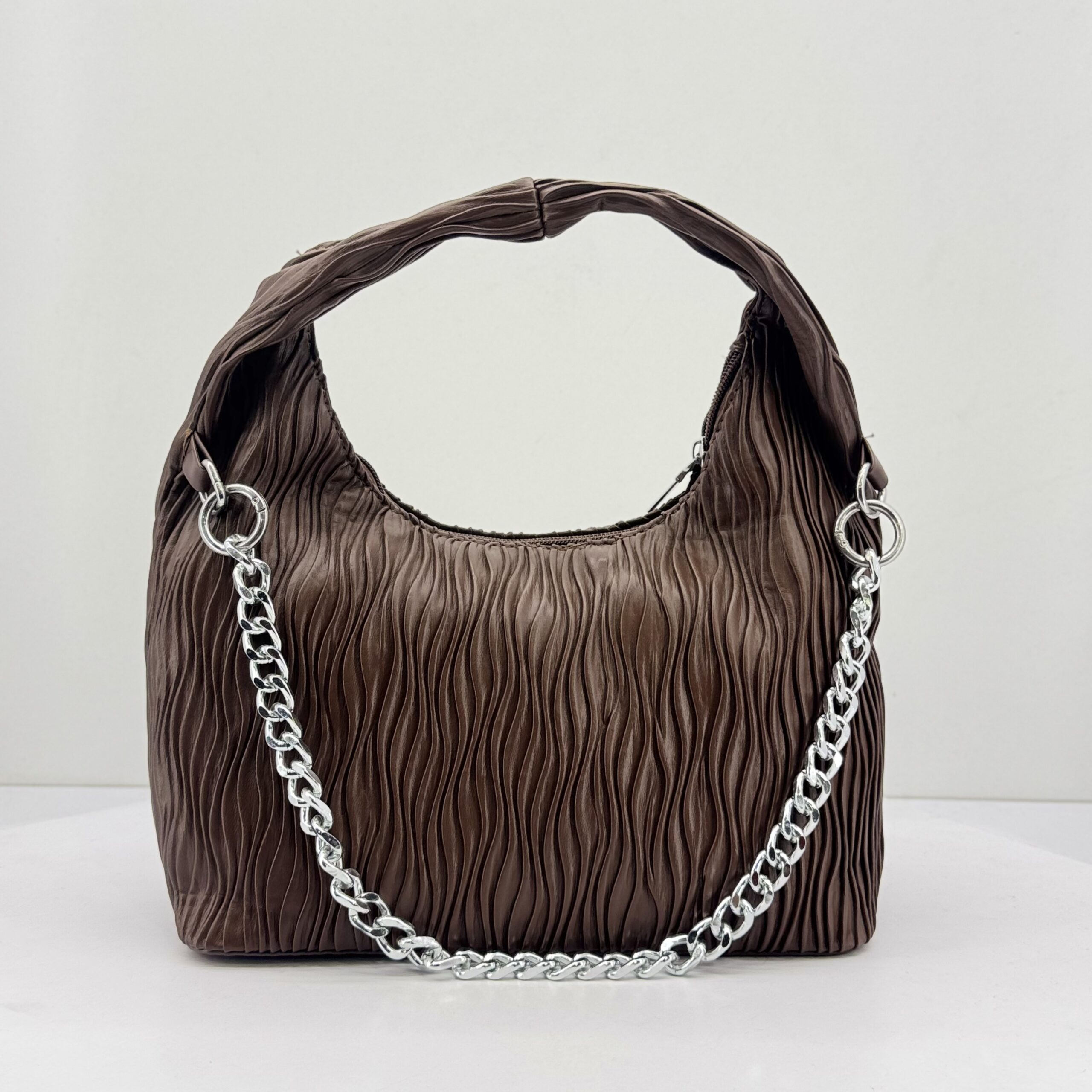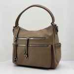 Modern leather handbag with a comfortable handle and an elegant look that goes with casual and classic outfits.