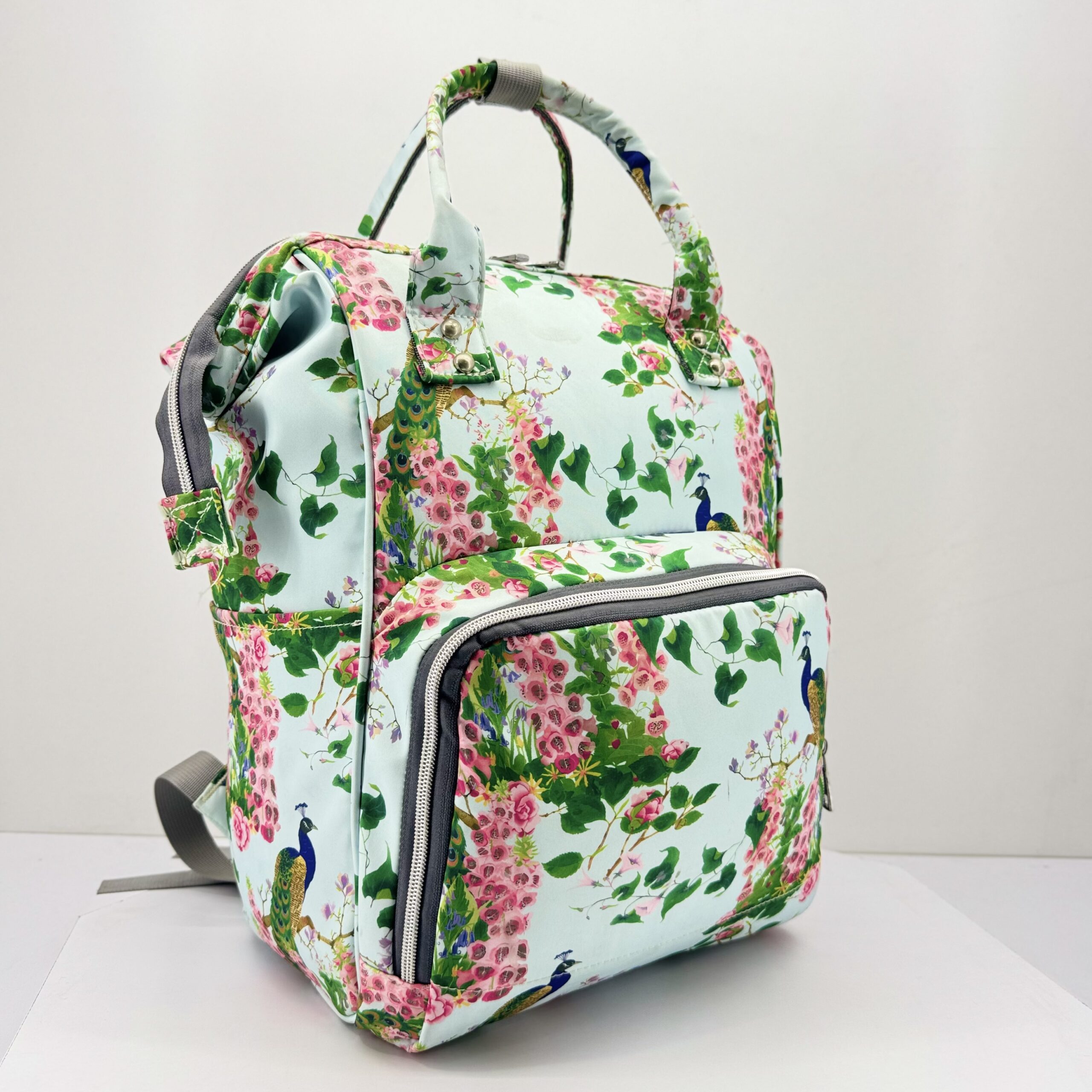 شنطة أمهات مشجرة – عملية وأنيقة لكل خروجة 🌸👜